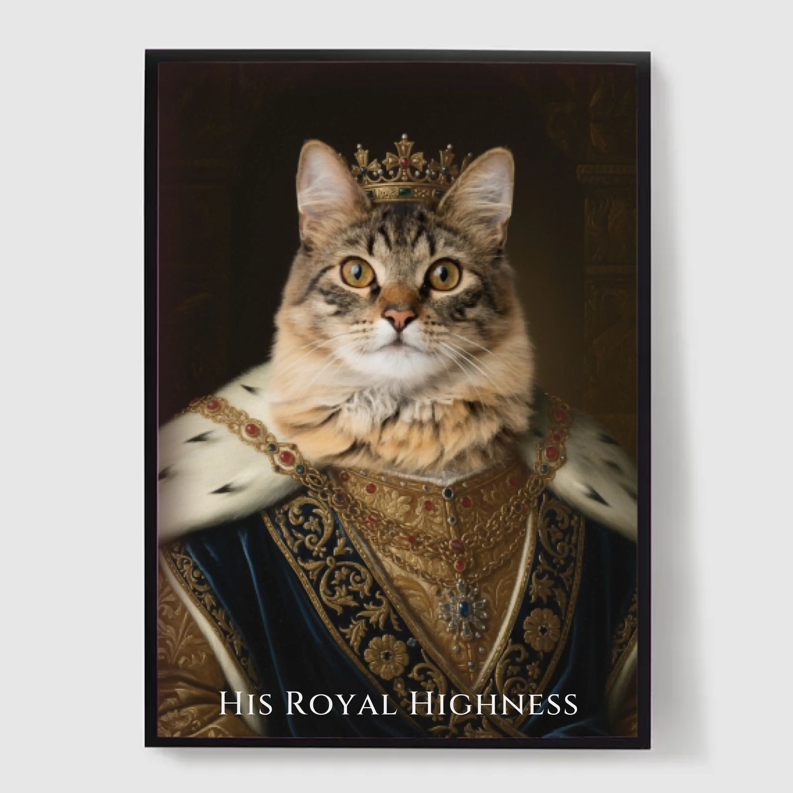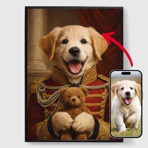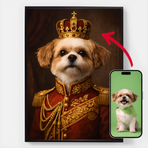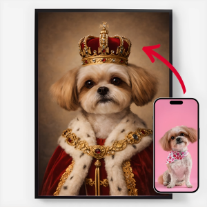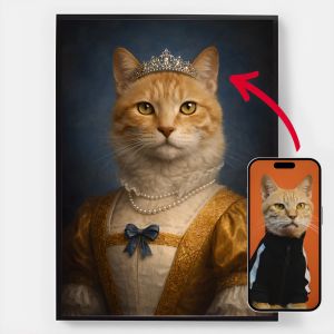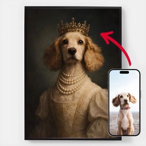Our personalised royal pet portrait posters are a unique way to showcase your pet's personality. Each piece is custom-made, bringing out a regal side of your pet that you'll love. These posters make perfect gifts for pet lovers or a charming addition to your home decor. With high-quality prints and various sizes available, finding the perfect portrait is easier than ever.