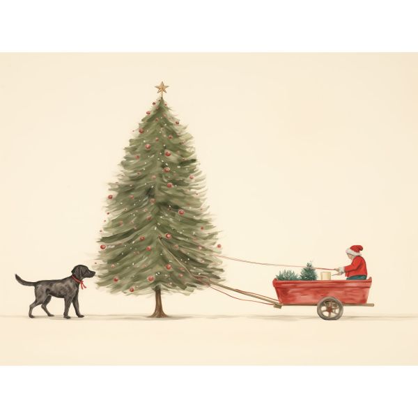 This charming poster features a festive scene with a Christmas tree and a dog, adding holiday cheer to any room. Perfect for seasonal decoration, it brings warmth and joy with its delightful illustration. Product contains a single poster only.