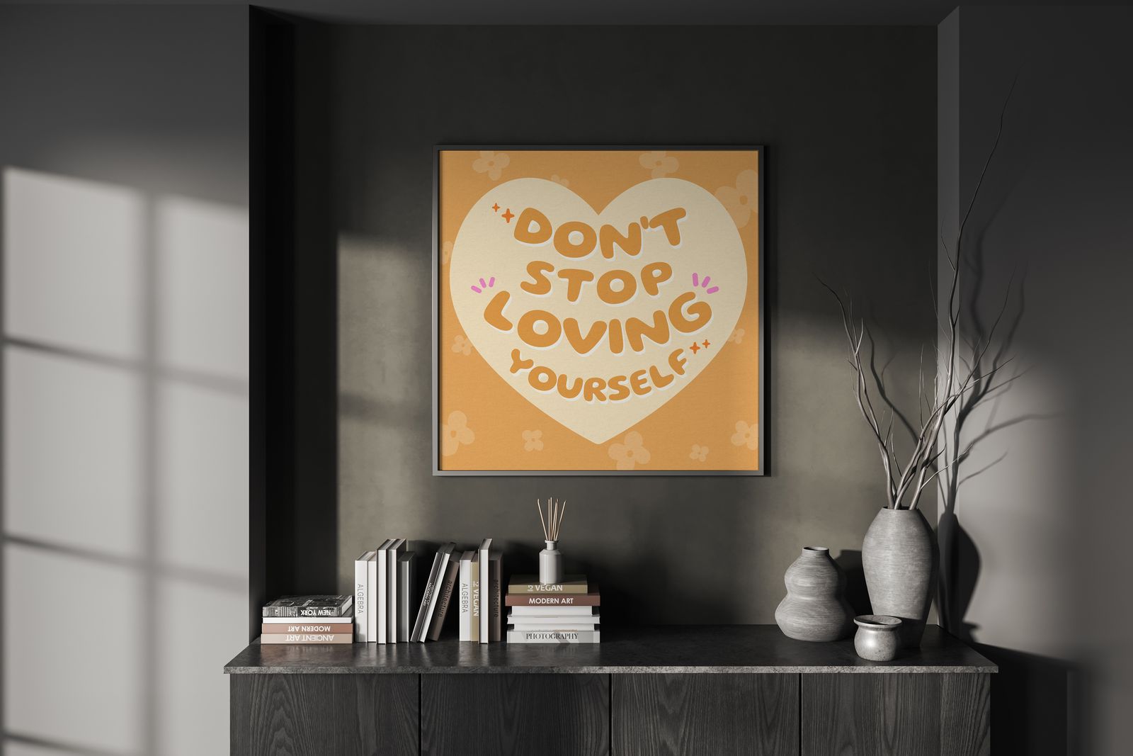 • Fall and Winter: As fall and winter approach, switch to posters with warmer and cozier motifs. Use images with warmer colors, autumn scenes, or artworks that create a sense of warmth and comfort, such as forest scenes or minimalist geometric patterns.