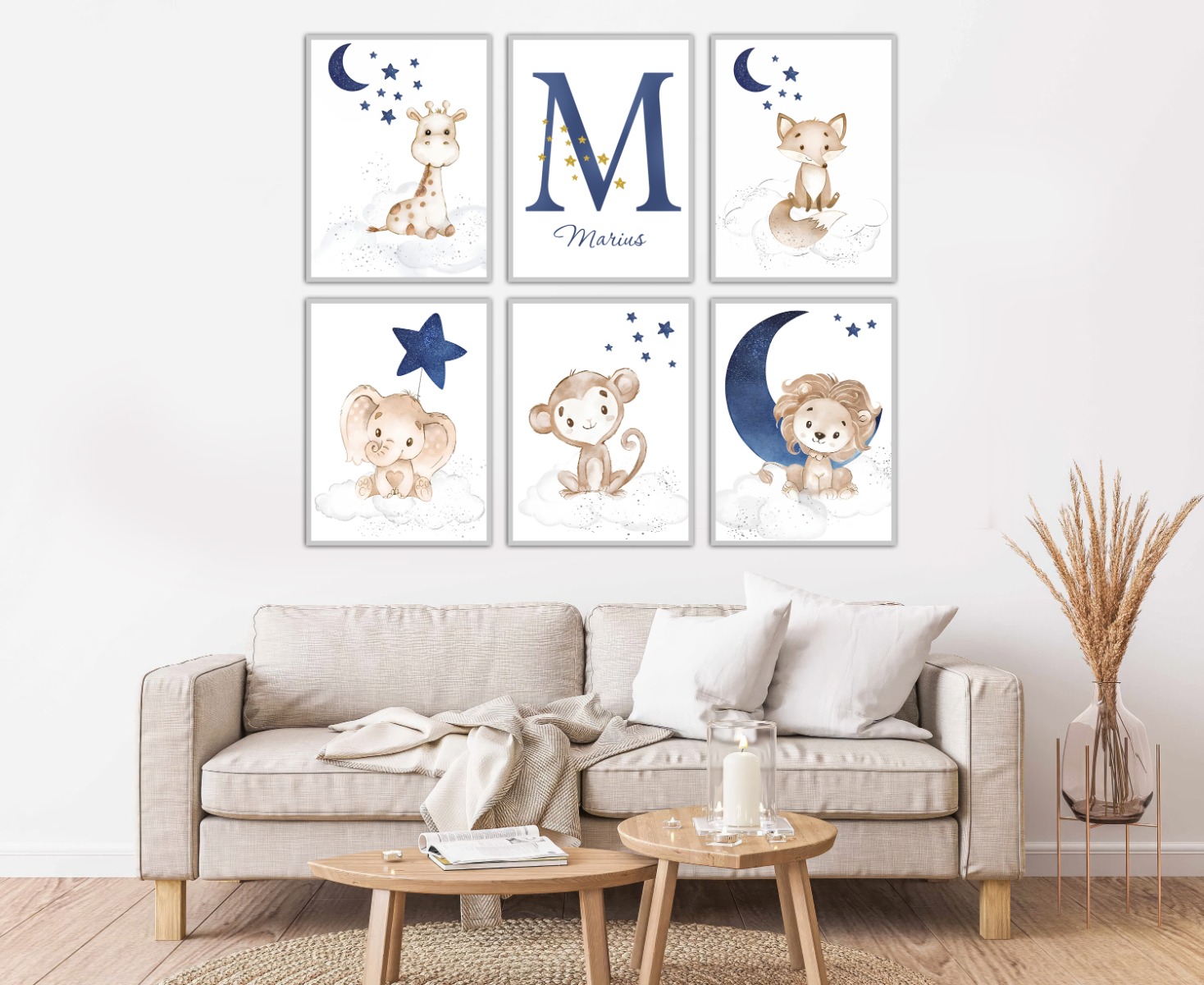 Our watercolor posters can be customized with names and are available in various motifs, from animals and flowers to excavators. These posters are sold individually and in sets of three, making them ideal for creating cohesive wall art. The soft, flowing colors create a harmonious and soothing atmosphere in any room, perfect for children's rooms or cozy corners at home.