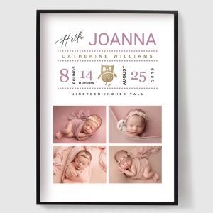 Celebrate life’s most precious moment with our personalised birth posters — beautiful custom prints designed to capture the details of your child’s arrival. In this collection, you can create a unique poster by adding your baby’s name, date of birth, time, weight and length, turning special memories into timeless wall art.
