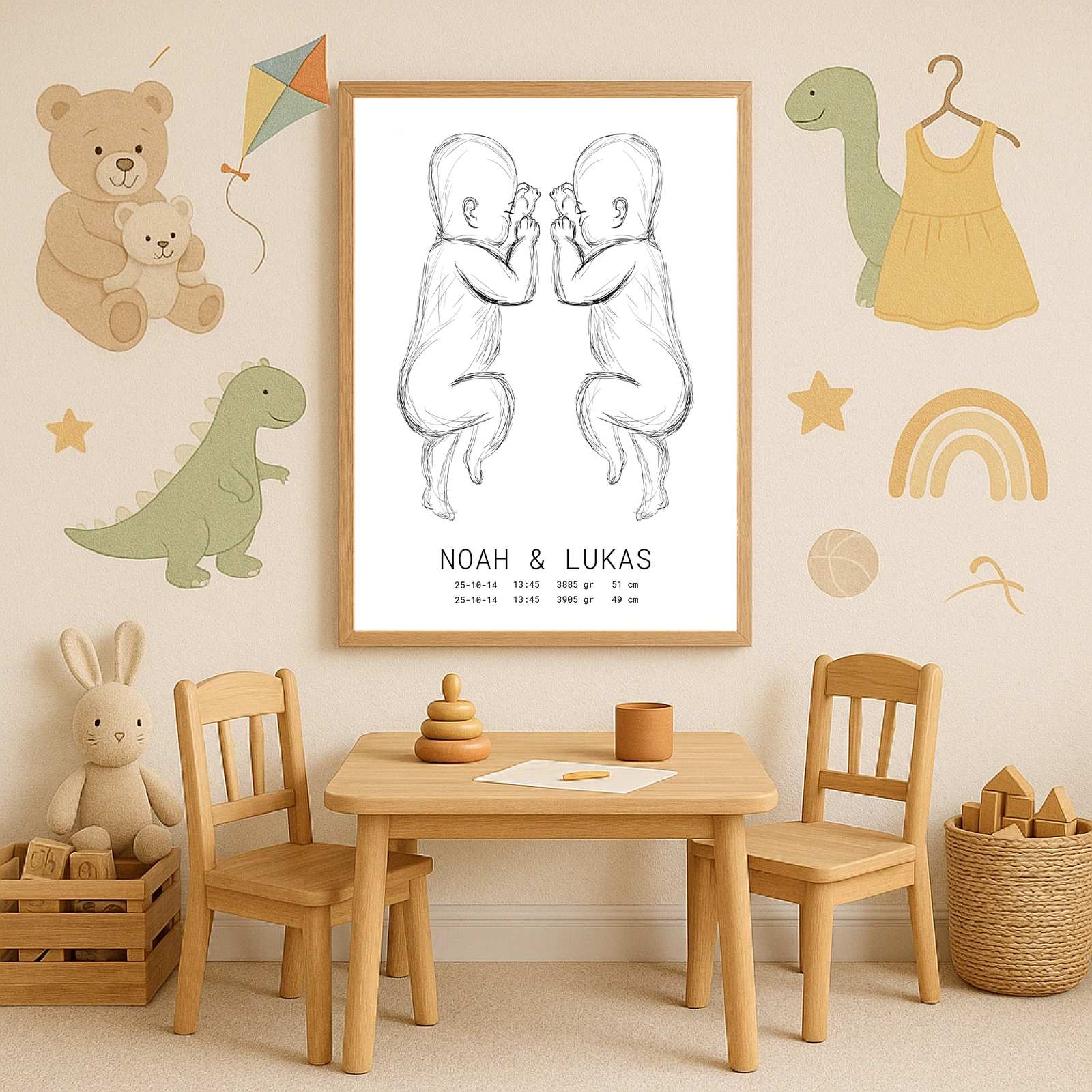 Celebrate life’s most precious moment with our personalised birth and birthday posters — beautiful custom prints designed to capture the details of your child’s arrival. In this collection, you can create a unique poster by adding your baby’s name, date of birth, time, weight and length, turning special memories into timeless wall art.